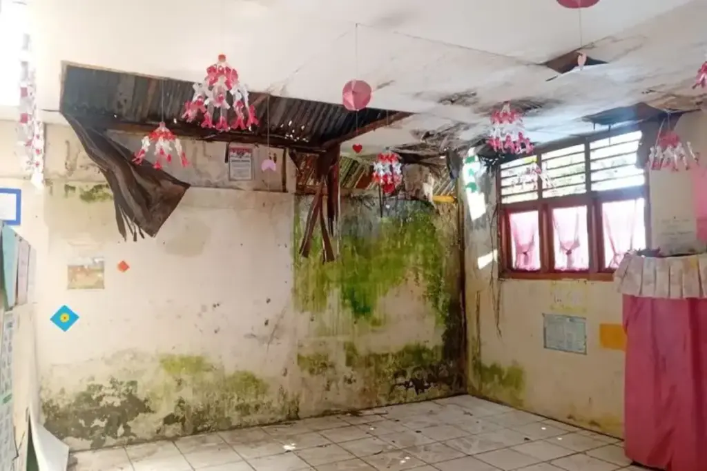 Situasi semakin memburuk dengan adanya bencana alam angin puting beliung pada tahun 2025 yang menghantam salah satu ruangan kelas. “Waktu itu angin kencang dan sempat ada pohon tumbang di belakang sekolah dan menghantam ruangan kelas yang rusak berat itu,” jelas Tombeng.
