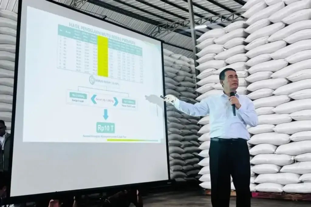 KARAWANG – Menteri Pertanian Andi Amran Sulaiman menyatakan kesiapan Indonesia untuk mengekspor 500.000 ton beras ke negara lain, didukung oleh Cadangan Beras Pemerintah (CBP) yang saat ini mencapai 5 juta ton di gudang Bulog. Pernyataan ini disampaikan saat Amran meninjau stok beras di gudang Bulog yang disewa di JDP Karawang1 Logisticspark, Karawang, Jawa Barat, pada Kamis (23/4/2026).