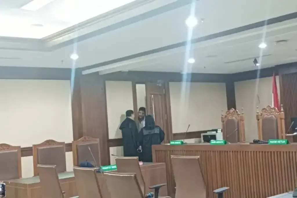 JAKARTA, Kompas.com – Terdakwa kasus dugaan peredaran narkotika di dalam Rumah Tahanan (Rutan) Salemba, Muhammad Ammar Akbar alias Ammar Zoni, tampak santai berbincang dengan kuasa hukumnya, Jon Matias, menjelang pembacaan vonis di Pengadilan Negeri (PN) Jakarta Pusat, Kamis (23/4/2026). Perbincangan singkat itu diwarnai tawa dan senyum dari Ammar Zoni.