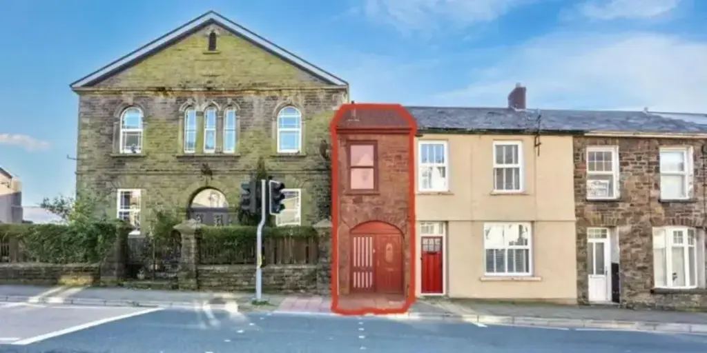 Rumah dengan satu kamar tidur di Pentre, Rhondda Cynon Taf ini memiliki lebar yang sangat ramping, hanya 2,2 meter pada bagian terluasnya. Meski bangunannya sempit, penghuninya tetap dapat menikmati ruang terbuka di bagian taman.